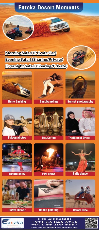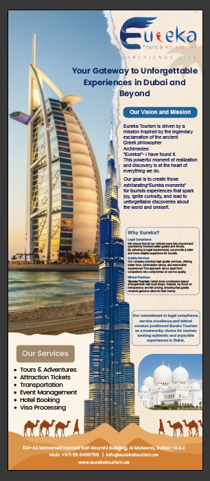 Welcome to Eureka Tourism, your trusted travel companion in the heart of Dubai. With over 10 years of experience in the tourism industry, we have built a reputation for delivering exceptional travel experiences that blend adventure, culture, and luxury. At Eureka Tourism, we are more than just a tour operator — we are storytellers of adventure, curators of unforgettable memories, and your gateway to discovering the beauty and spirit of the UAE. Whether you're chasing the thrill of a Dubai Desert Safari, exploring modern city attractions, or relaxing on a luxury yacht cruise, we ensure every journey is seamless, safe, and truly memorable.