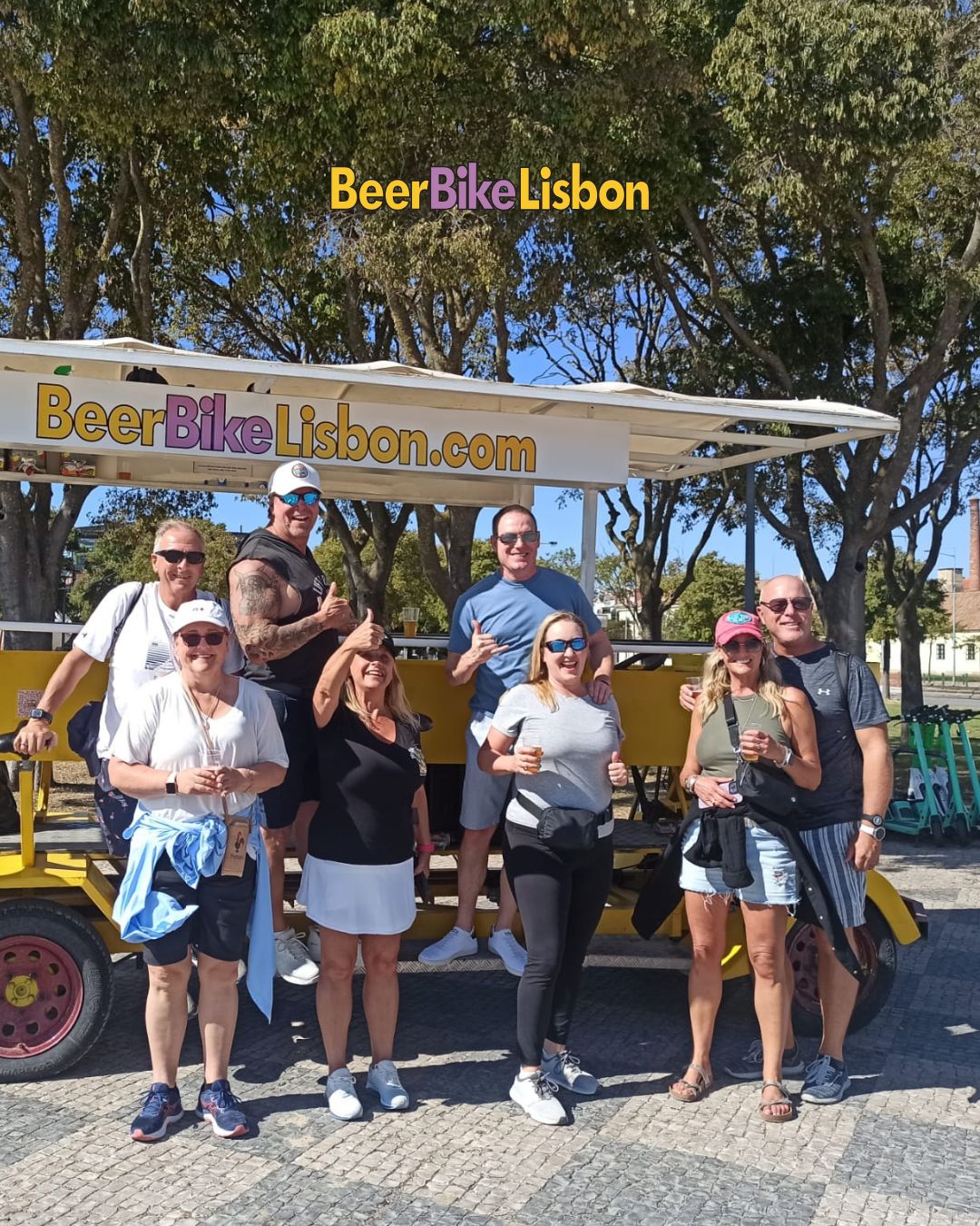 Discover the essence of Lisbon on our epic Beer Bike tours! Explore the city's iconic landmarks such as Belém Tower, the Monument of the Discoveries, and Lisbon Bridge, all while enjoying an open bar with premium wine, prosecco, sangria, and local beer. Unforgettable sights, endless fun - join us for the ride of a lifetime!