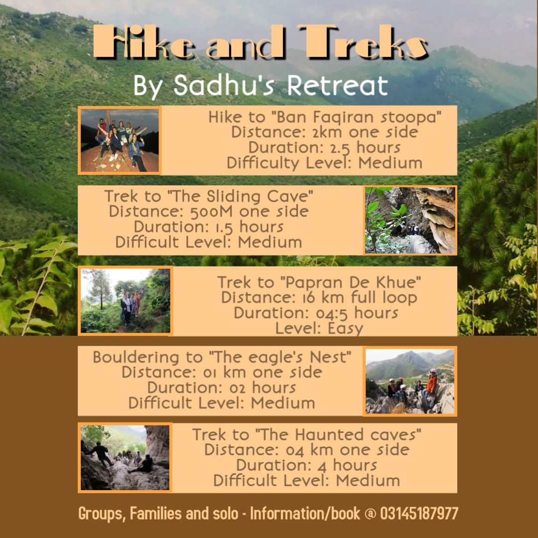 Sadhu’s Retreat has been used, for decades, as a meditation space by Buddhist monks. With their caves right next door, the retreat is situated in a valley surrounded by lush greenery on all sides. In addition to its restaurant facilities, Sadhu’s Retreat also provides an array of outdoor experiences such as luxury camping, infinity pools, trekking & hiking trails, rock climbing, bouldering, zip lining, archery, pellet guns (air rifle), paintballing plus many more customised teambuilding exercises. Our Restaurant features fresh homemade cuisine with catering options readily available for both private functions and Corporate Events. We have ample capacity to host large gatherings comfortably accommodating groups ranging between 5 - 300 guests; we cater to various types of thematic celebrations too ! So if your planning Lunch , Hi Tea , Dinner Party / Event @ Sadhu’s Retreat In Shah Allah Ditta then do give us a call .
